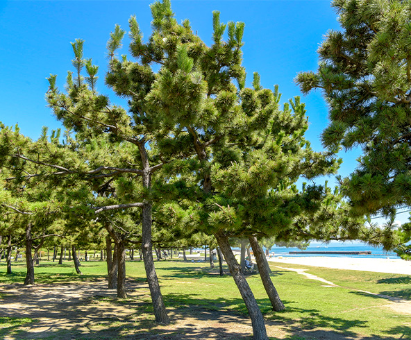 「県立舞子公園」の東側には、リゾート感満載のレジャーエリアが広がっています。「ホテルセトレ神戸・舞子」は全室オーシャンビューの絶景ホテル。その先の「アジュール舞子」は約800mの砂浜が特徴の海浜公園で、海水浴や磯遊び、釣りなどが楽しめます。松林や芝生広場、バーベキュー広場もあるので、ウォーキングやピクニック、愛犬との散歩にも最適です。