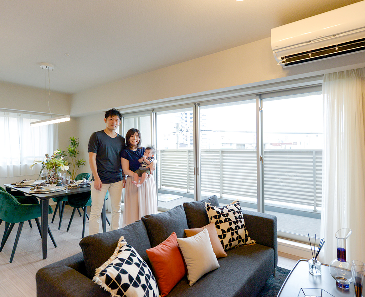 約10ヶ月前「プレディア中広町レジデンス」にご入居されたSご夫妻。ご入居後に初めてのお子様も誕生し、賑やかで快適な毎日を過ごされています。「マイホーム購入にあたっては、最初から『横川駅』近辺と決めていました。実家がすぐ近くなので、ここがどんなに便利な場所か、よく知っていたからです。」というご主人は、勤務先もこのマンションから自転車で10分程の距離。「災害時など万が一の場合でも、歩ける近さであれば安心です。この辺りの物件をいくつか見学しましたが、このマンションは、共有部の充実度や周辺環境の良さなどが群を抜いていたので、迷うことなくここに決めました。」