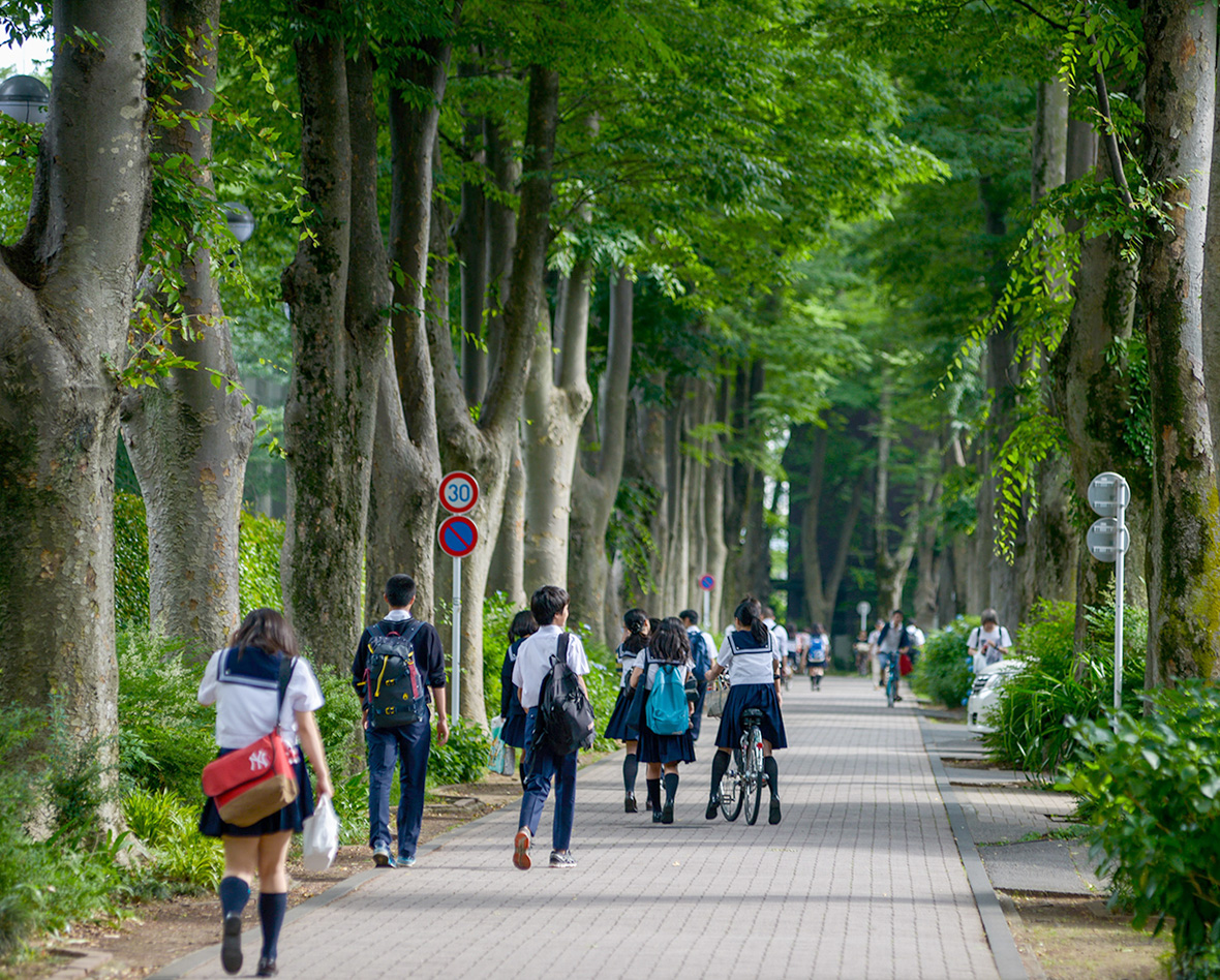 体育館の近辺は「吉祥寺北町」。緑の中に立ち並ぶ大邸宅を眺めながら、「成蹊学園」へ向かいます。ちょうど下校時間なのでしょう。学生たちが、美しいケヤキ並木の道を歩いていました。このケヤキ並木は、環境省の“残したい日本の音風景100選“にも選ばれています。