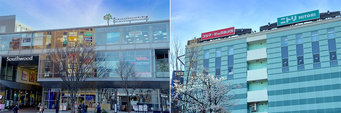 「都筑ふれあいの丘」駅隣の「センター南」駅へ来てみました。横浜市営地下鉄グリーンラインとブルーラインが乗り入れ、地元では「センナン」の愛称で親しまれています。「プレディア都筑ふれあいの丘」からは自転車で8分位。駅前には大型ショッピングモールや家電・家具の量販店などが立ち並び、買い物に訪れる多くの人で賑わっています。