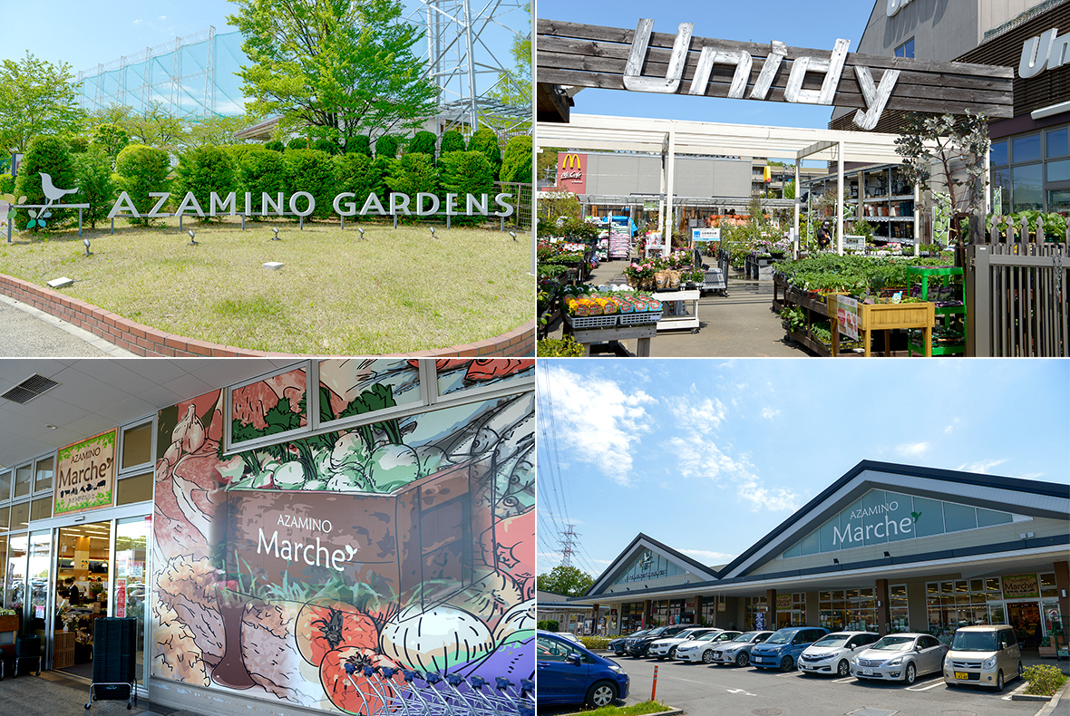 駅から西へ進むと郊外型商業施設「あざみ野ガーデンズ」があります。敷地内には、ゴルフ、テニス、フットサル、フィットネスなどのスポーツ施設や、ファーマーズマーケットなどの食品店、鮮魚、精肉、惣菜などの専門店、庭や家電のホームセンター、レストラン、カフェなど、ありとあらゆる施設やショップが集積。一日中でも楽しめます。