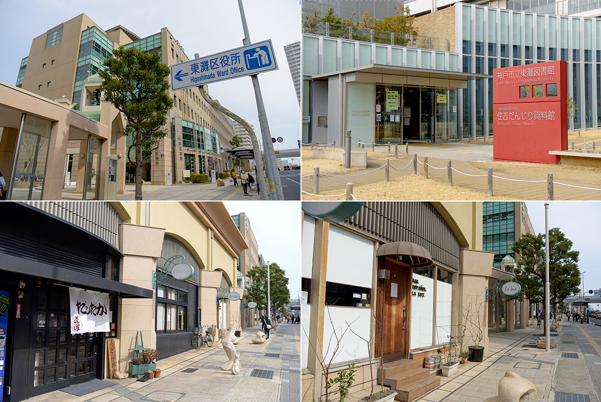 「Liv」2Fの「御影新生堂」は、国内外選りすぐりの商品を取り揃えた人気のマーケット。普通のスーパーでは手に入らないようなこだわりの逸品を購入することができます。駅前から東西へ延びる国道2号線は、この街のメインストリート。区民センター、区役所、郵便局、図書館などの行政施設が建ち並び、フラットでゆとりある歩道が整備されています。