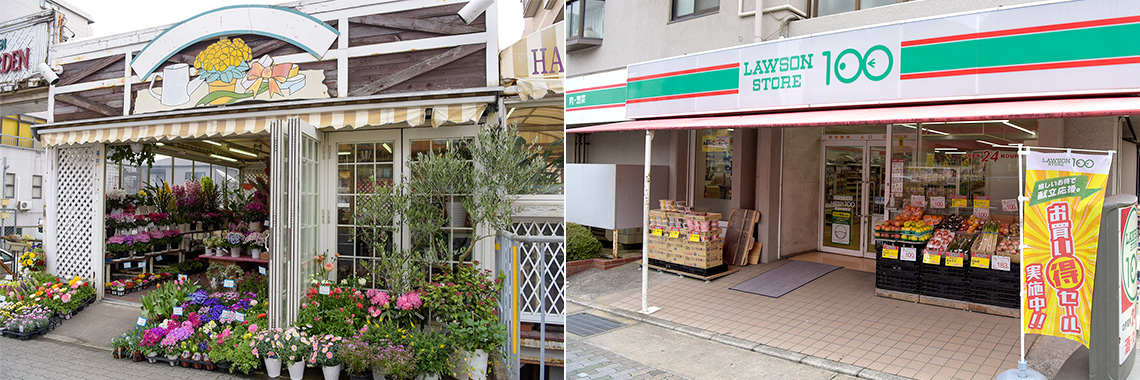 この風致地区に近接する閑静な邸宅街に「プレディア住吉甲南町」が誕生します。駅からは徒歩11分。国道2号線から少し奥まった、利便を享受しながらも喧騒を遠ざけられる立地です。隣接する「ハヤミガーデン」は、種類豊富な花や観葉植物を扱うガーデンショップ。そのお隣には、新鮮な野菜や果物、お惣菜などを揃えた「ローソンストア100」があります。