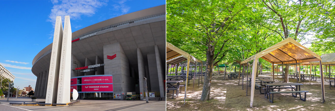 さらにもう少し足を延ばせば、大阪を代表する総合公園「長居公園」にも気軽に遊びに行けます。サッカーW杯や世界陸上など多くの国際試合が開催される「ヤンマースタジアム」を中心に、プール、博物館、植物園、アスレチック、バーベキューなど、数えきれないほどの施設が集まる広大な都会のオアシスです。現地からは自転車で9分と程よい距離。ご家族で一日中楽しめます。