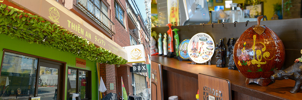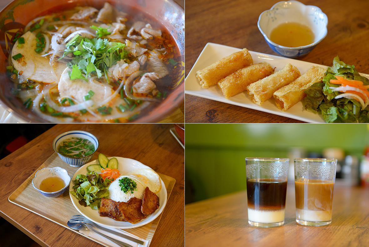 ランチタイムのおススメは、現地徒歩3分のベトナム料理店「ティンアン」。ベトナム感満載の店内で、フォー(お米の麺料理)やコムスン(焼き豚乗せご飯)など、ベトナムの家庭料理が味わえます。コンデンスミルクたっぷりのベトナムコーヒーやココナッツアイスなどドリンク・デザートも充実。テイクアウトして、ご自宅で楽しむこともできます。