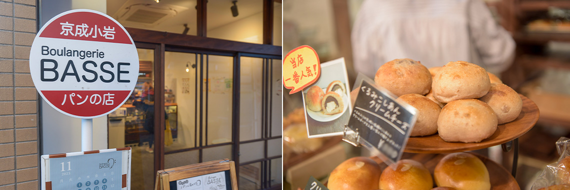 江戸川河川敷から西へ。「京成小岩」駅周辺にも素敵なお店があります。「ラトリエ・ドゥ・シュクル」は「肉球マドレーヌ」で知られる洋菓子屋さん。オーナーシェフが厳選した果物を使った季節ごとのケーキ「契約農家シリーズ」も有名です。「バース」は「くるみこしあんクリームチーズ」が大人気のパン屋さん。遠くから買いに来られる常連さんも多いヒット商品です。