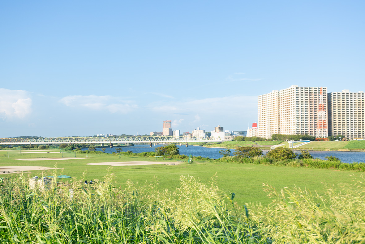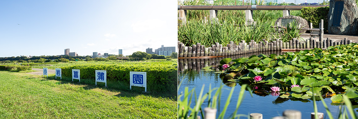 23区内で公園面積がNo.1の江戸川区。「小岩」の街も至る所に大小様々な公園が点在しています。少し足を延ばせば、江戸川河川敷の大自然も身近。グラウンド、運動場、サッカー場、野球場などがあり、スポーツに親しむには絶好のスポットです。河川敷に広がる「小岩菖蒲園」は回遊式の庭園。5~6月には約5万本の花菖蒲が咲き誇り、都内名所の一つとなっています。