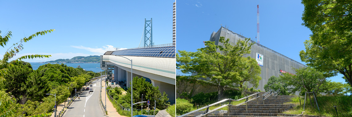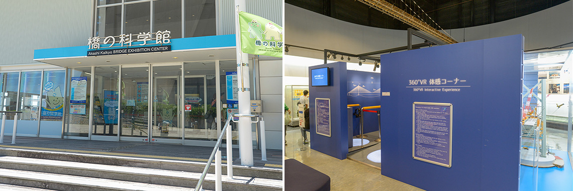 「明石海峡大橋」のたもとにある「橋の科学館」は、海洋架橋技術の魅力が学べるサイエンスミュージアムです。「明石海峡大橋」300mの高さからの360°パノラマが体感できる「360°VR体感コーナー」は迫力満点。実際に橋の塔頂に登って、明石海峡や「舞子」の街を見渡す大人気ツアー「明石海峡大橋塔頂体験ブリッジワールド」の出発地にもなっています。