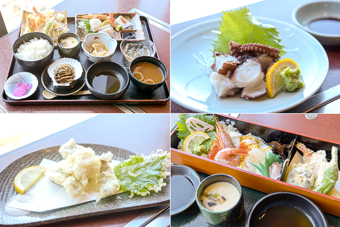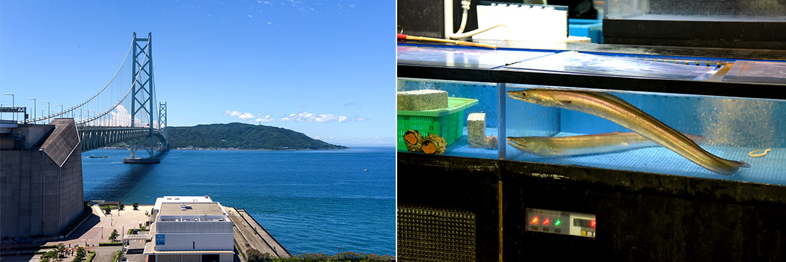 「Tio舞子」内にある「海彩園」は、どの席からでも瀬戸内海と「明石海峡大橋」が一望できる海鮮レストラン。店内には生け簀があり、新鮮な海の幸を贅沢に味わうことができます。瀬戸内海を主産地とする「鱧(はも)」や明石名物の「蛸(たこ)」は、さすが本場の美味しさ。リーズナブルなランチタイムのセットメニューはご家族連れにもおススメです。