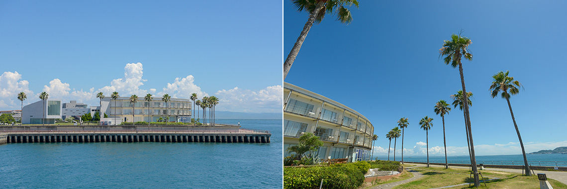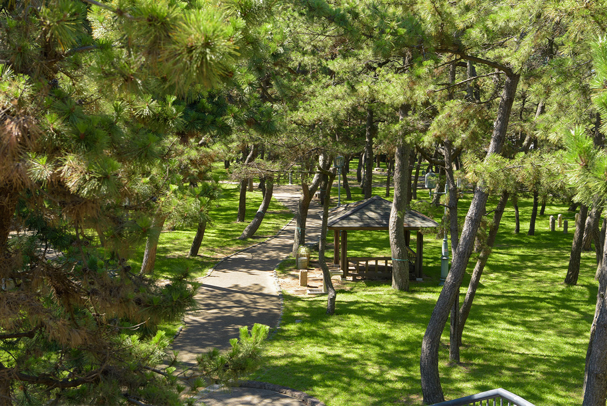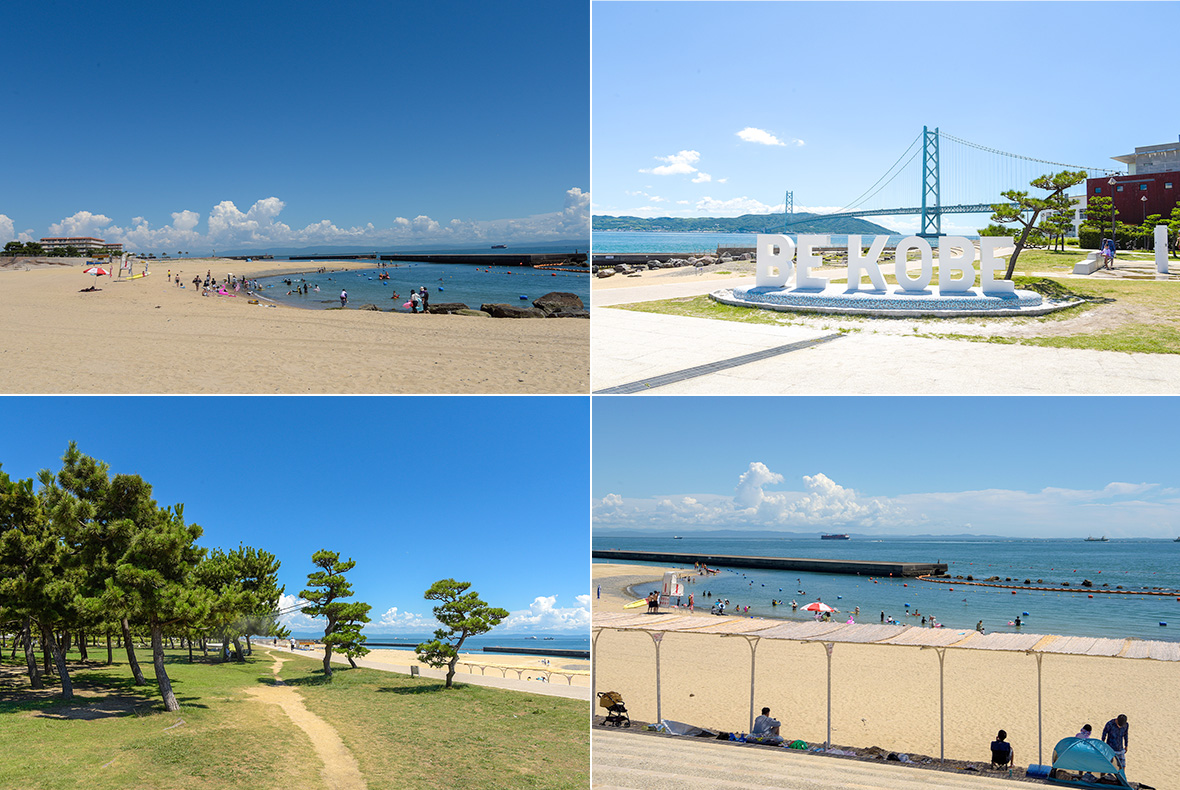 「県立舞子公園」の東側には、リゾート感満載のレジャーエリアが広がっています。「ホテルセトレ神戸・舞子」は全室オーシャンビューの絶景ホテル。その先の「アジュール舞子」は約800mの砂浜が特徴の海浜公園で、海水浴や磯遊び、釣りなどが楽しめます。松林や芝生広場、バーベキュー広場もあるので、ウォーキングやピクニック、愛犬との散歩にも最適です。