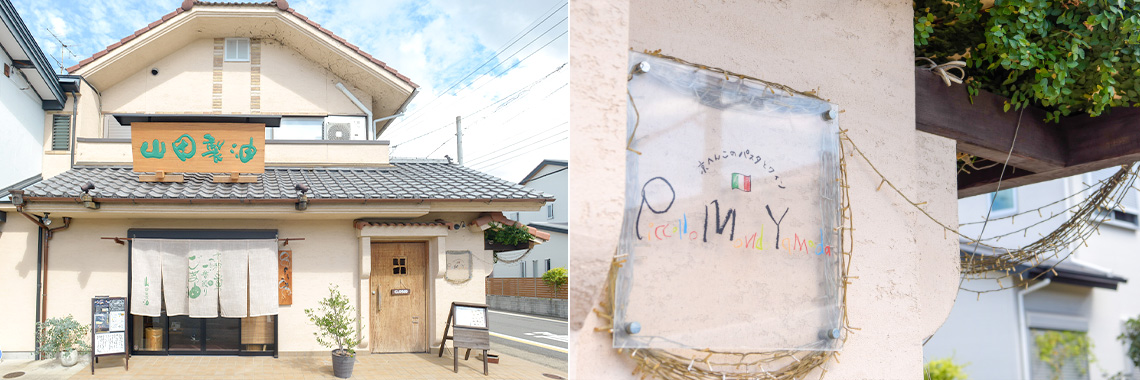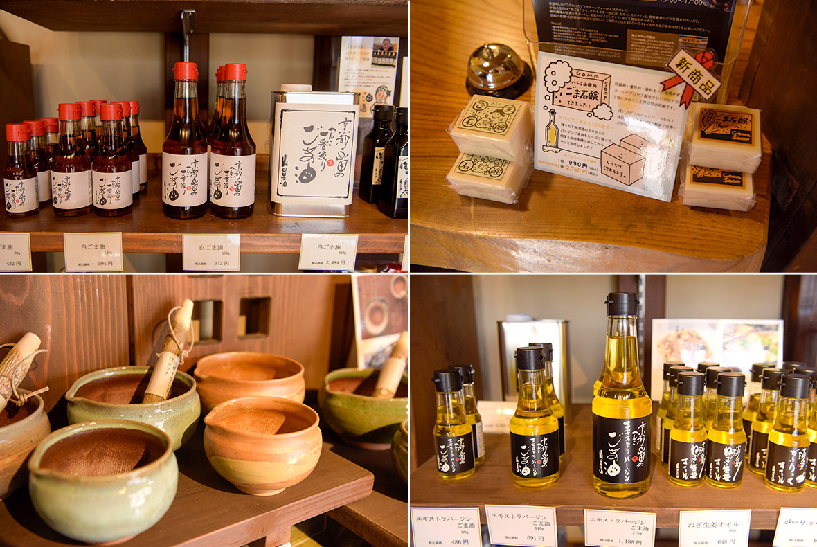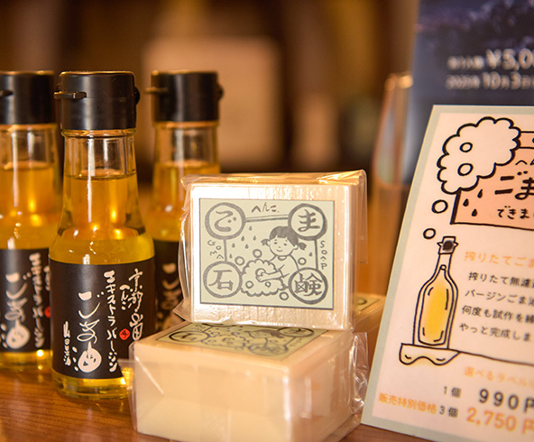 区役所の近くにある「山田製油」は、昭和9年の創業以来「安心安全な良い素材を用いて、最高の製品を作る」をポリシーに「ごまかしなしのごま油」を作り続けています。店内にはごま油をはじめ、様々なごま製品がズラリ。併設のレストラン「ピッコロモンド・ヤマダ」では、お肉や魚、採れたての地野菜とともに、イタリアンテイストのごま料理が楽しめます。