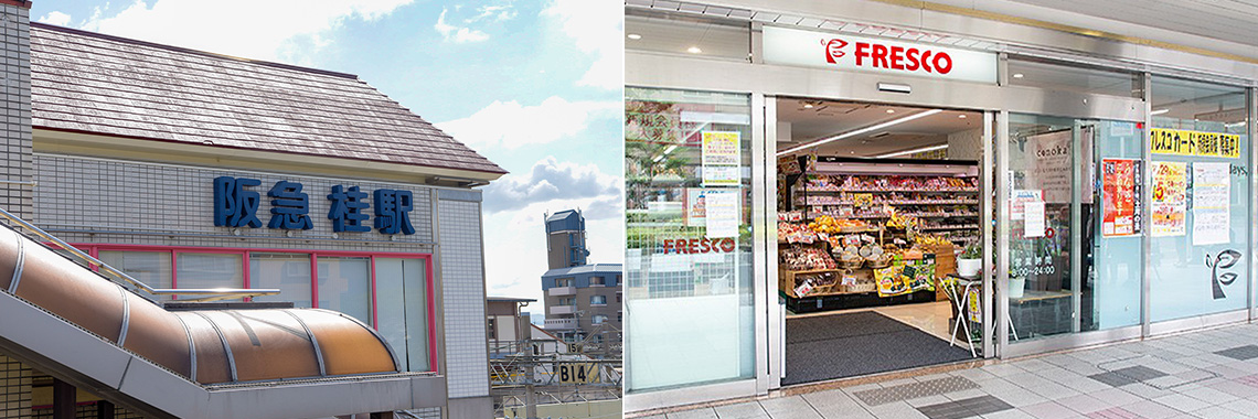 スタート地点は、阪急京都線・嵐山線の「桂」駅。特急停車駅で、「烏丸」駅へは特急1駅。さらに「京都」駅へ17分、「大阪梅田」駅へ直通42分と、2つの都心へ爽快にアクセスできる便利な駅です。駅直結のショッピングモール「ミュー阪急桂」内には、夜12時まで営業するスーパーをはじめ、薬局、書店、飲食店など、暮らしに役立つショップが揃っています。