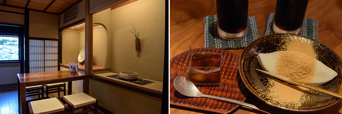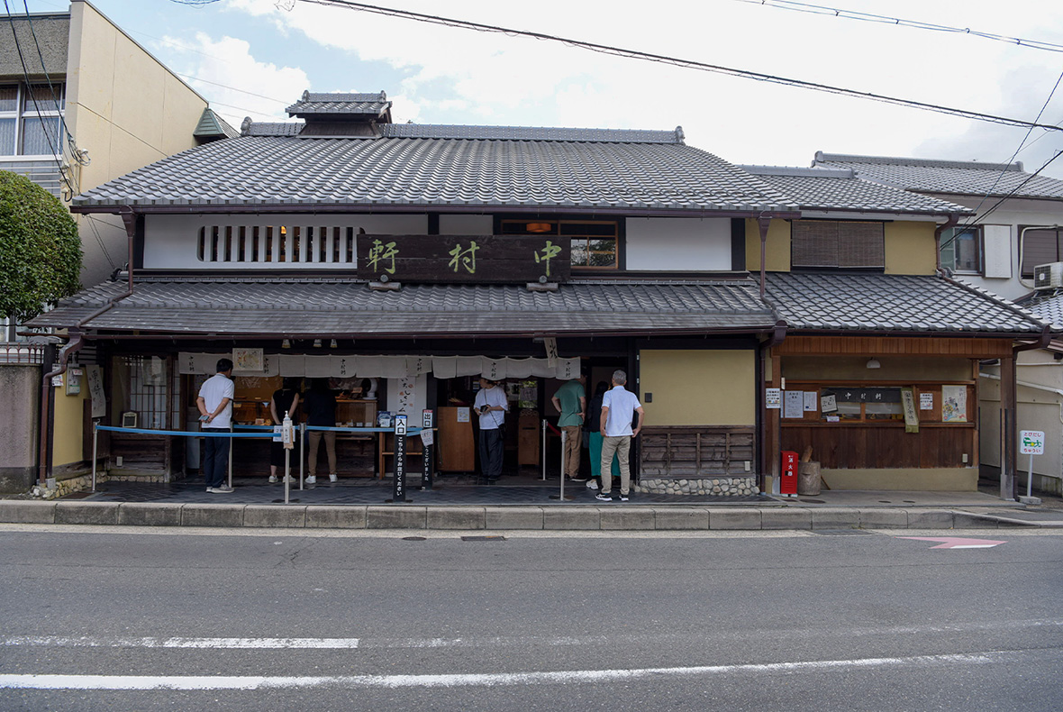 「桂離宮」すぐ南側の「中村軒」は創業百三十余年の和菓子店。前面の山陰街道にまだ馬車が走っていた明治初期から、街道を行き来する人々に「かつら饅頭」などのお饅頭を販売していたそうです。静かに寛げる店内の「茶店」で、和菓子はもちろん、春夏は冷やしぜんざい、かき氷、そうめんなど、秋冬はあべ川、ぜんざい、お雑煮なども愉しめます。