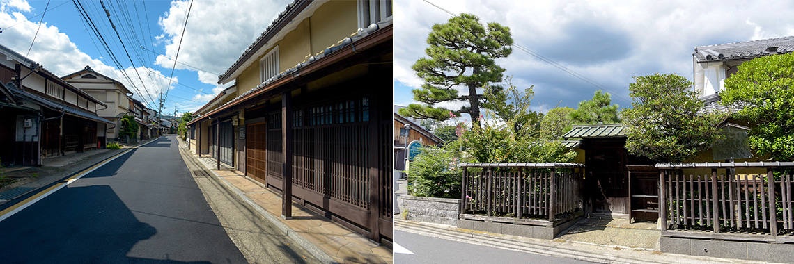 江戸時代、現在の西京区内を横断するように山陰街道が敷かれ、「桂」周辺は宿場町として栄えました。現在も街道沿いには当時の街並みが残り、地元ではその保存に努めています。1726年に建てられた「樫原(かたぎはら)本陣跡」は、大名、公家などの限られた人々だけの宿泊施設。京都市内で唯一残る本陣遺構として、非常に貴重な文化財となっています。