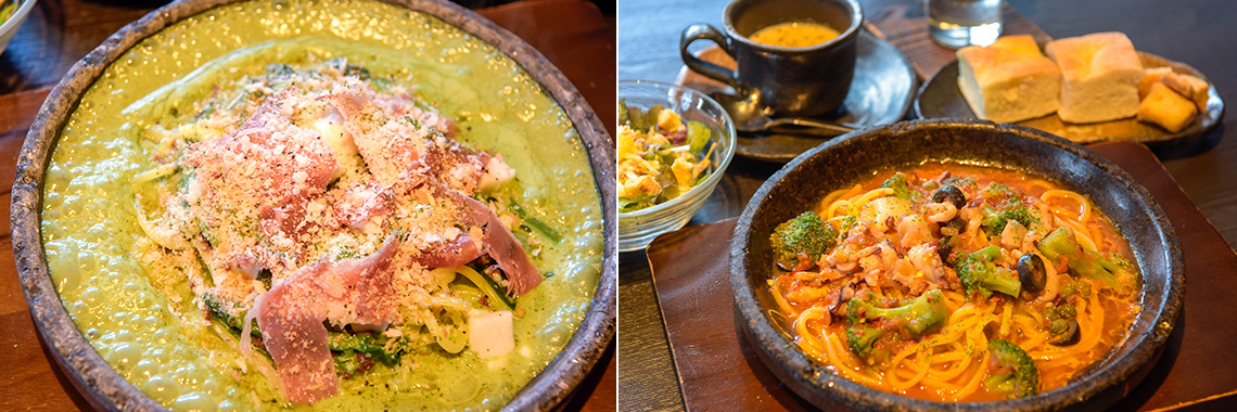「樫原本陣跡」の近くの「石焼き生パスタ蔵之助」は、築160年の趣ある京町家をリノベーションしたレストラン。他に類を見ない数十種類の豊富な生パスタメニューが、石焼きの器で最後まで熱々に味わえます。お子様メニューも用意されているので、お子様連れでも安心。「石焼生パスタ」創作の元祖として、他府県からわざわざ訪れるお客様も多い人気店です。