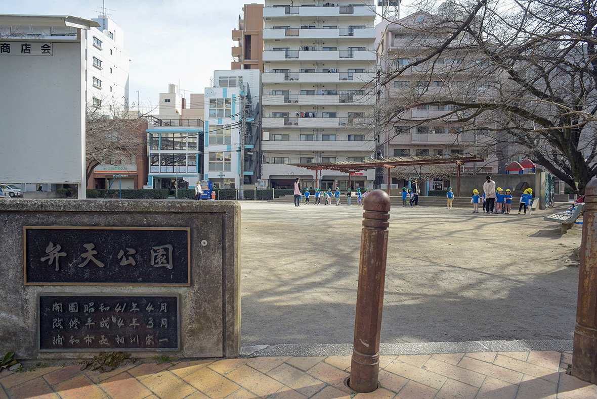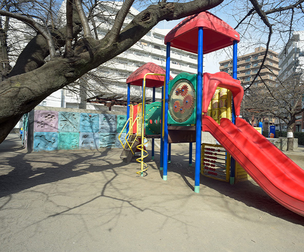 現地周辺には他にも公園がたくさんあります。徒歩6分の「もみじ公園」は、秋は紅葉、春は桜が美しい公園。徒歩7分の「弁天公園」もお花見スポットとして有名で、「さくらまつり」や「春まつり」など地域イベントの舞台にもなっています。どちらの公園にも子どもたちが喜ぶ遊具が設置され、園内からは近隣の保育園児や小学生が遊ぶ賑やかな声が聞こえてきます。
