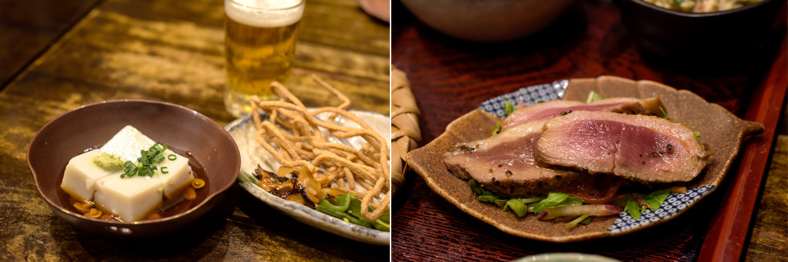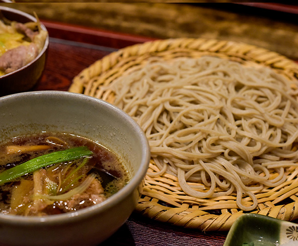 こちらは、大人の隠れ家的お蕎麦屋さん「禅味 一茶庵」。「鴨汁そば」、「鴨のたたき」、「そば豆腐」など、蕎麦と鴨料理を中心に、天ぷら、炊き込みご飯など多彩な料理が楽しめます。一押しは、こだわりの一品料理が贅沢に並べられた「禅味御膳」。ランチはもちろん、お酒とも相性抜群の鴨料理を愉しみながら、ほろ酔い気分で過ごす夜の時間もまた格別です。