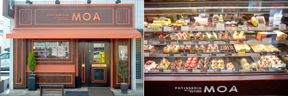 「パティスリーモア」は、地元の方々から愛されるケーキ屋さん。「月に一度の贅沢より、週に一度のご褒美を」をコンセプトに、ケーキや焼き菓子など常時50種類以上の商品が店頭に並びます。人気は、注文を受けてからクリームを詰めるシュークリーム。可愛いパッケージ商品やユニークな名前のドーナッツ「みなみうら輪」などもあり、手土産としても最適です。