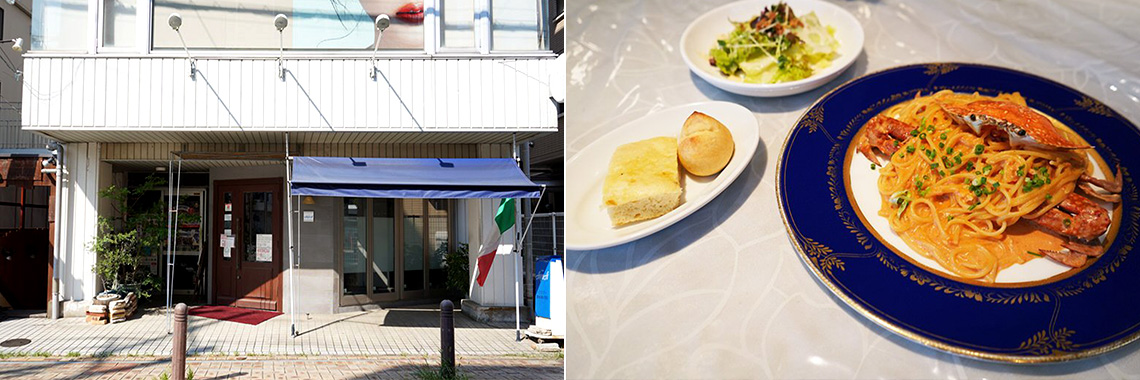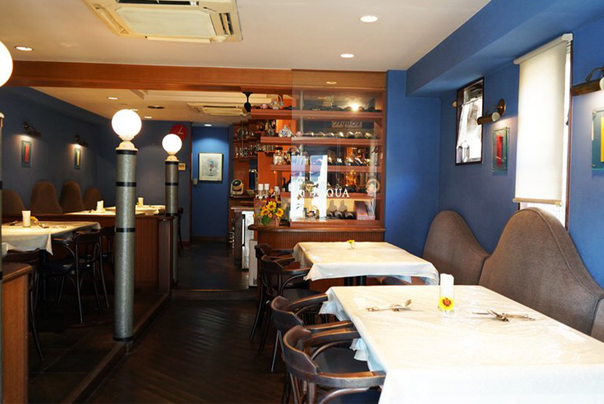 隠れ家的な名店から話題の人気店など、魅力的なお店が点在する東口エリア。現地近くの「トラットリア アクア」は住宅街に佇むイタリアンレストランです。青を基調とした店内は、上品で落ち着いた雰囲気でありながら、気負わずに足を運べる気軽さもあり、ランチの普段使いから、誕生日や記念日、お祝いなど、家族の「ちょっと特別な日」まで幅広く活躍します。
